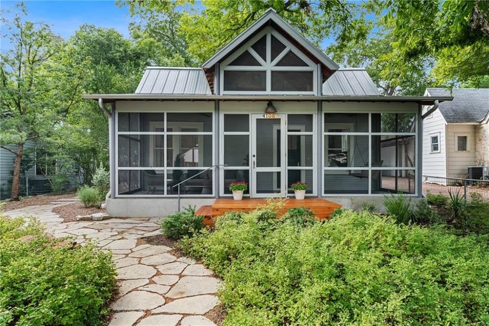 Like most bungalows, the 1929 house draws visitors in with charming curb appeal. Here, native plants are landscaped into the lush front yard, and the backyard has two ancient guardian pecan trees. Though the house is on the small side for Austin luxury homes, the front porch, backyard deck, and recent renovations make it a fit for homeowners who prefer the bungalow style.