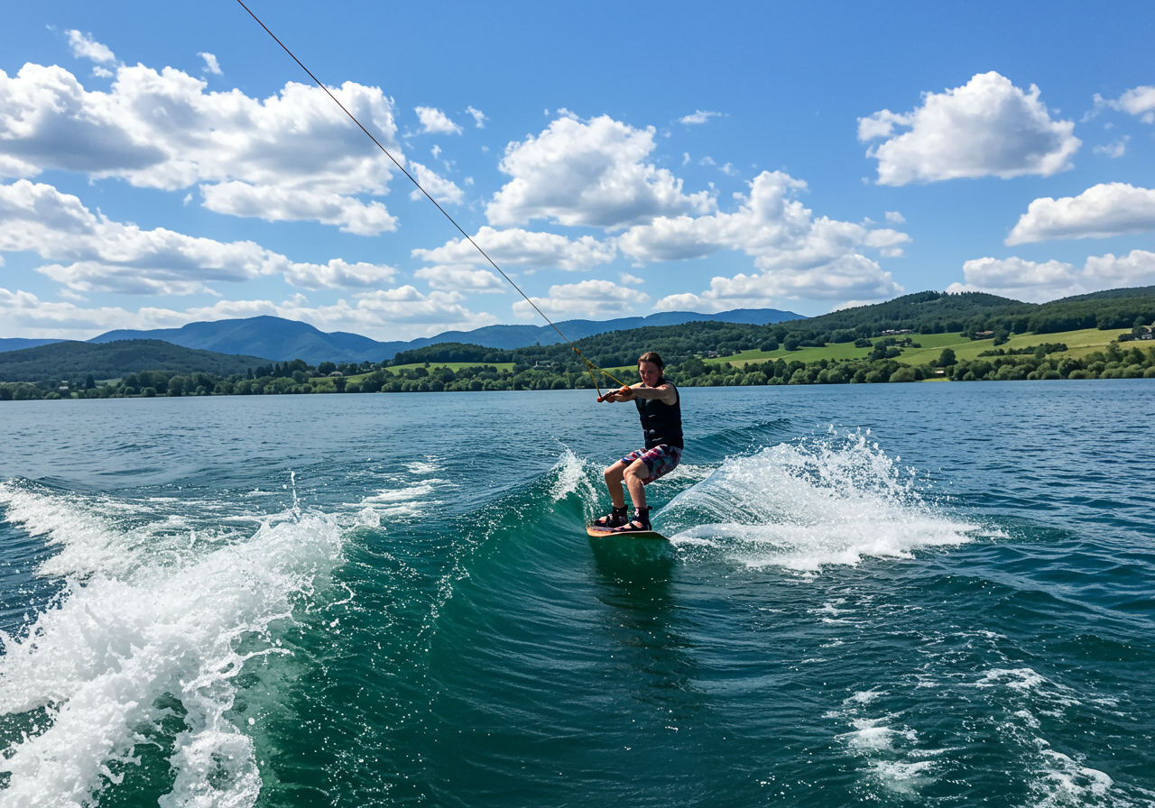 Jet skiing and wake surfing